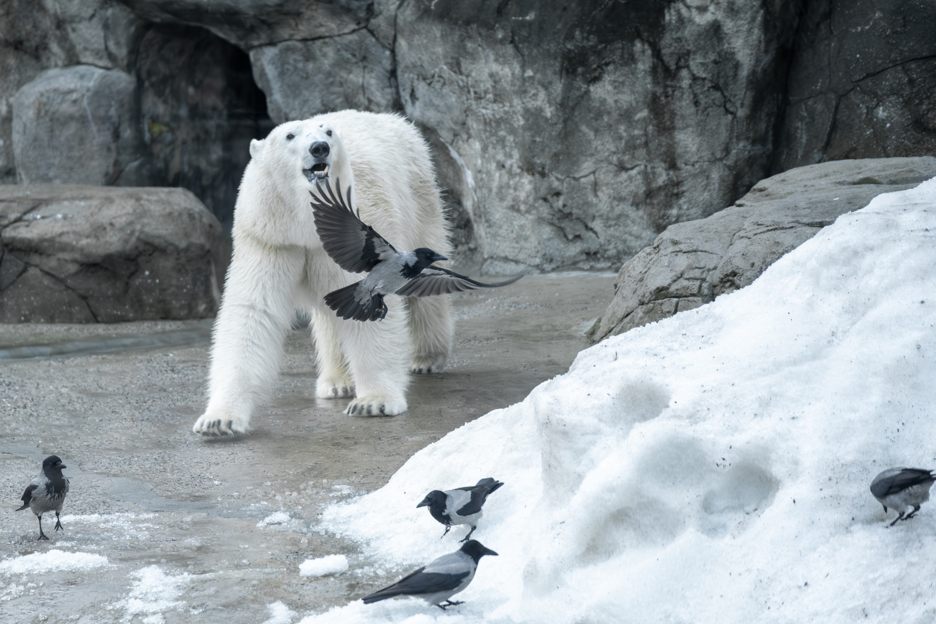 Росомаха Крендель и белый медведь